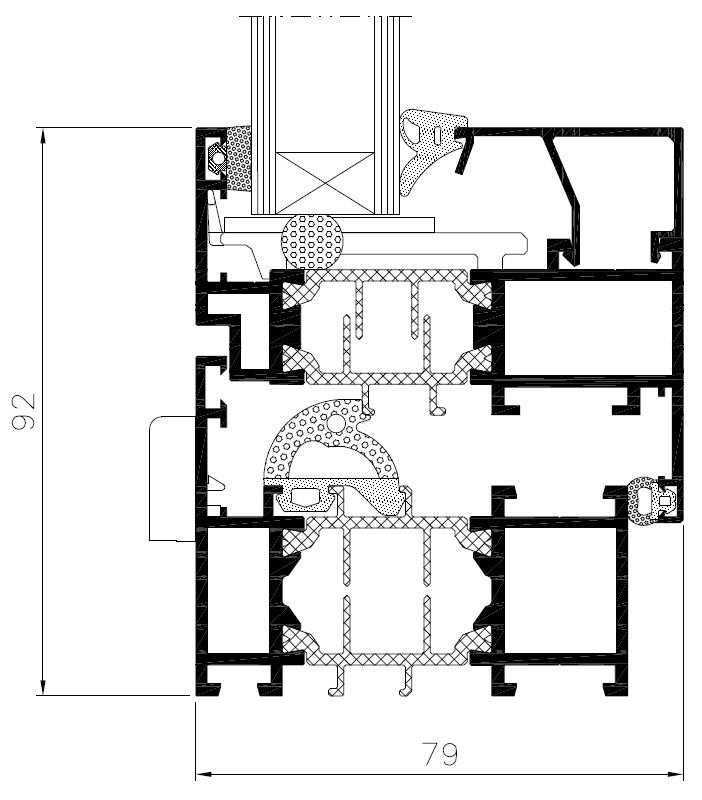 - stavební hloubka rámu 70 mm, dveřní křídla 70 mm a okenní křídla 79 mm